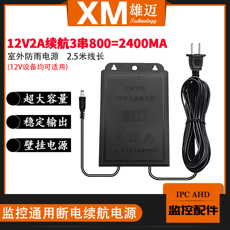 12v2a美規3600ma屋外防雨ups航続電源アダプタ家庭用12v監視適用小包