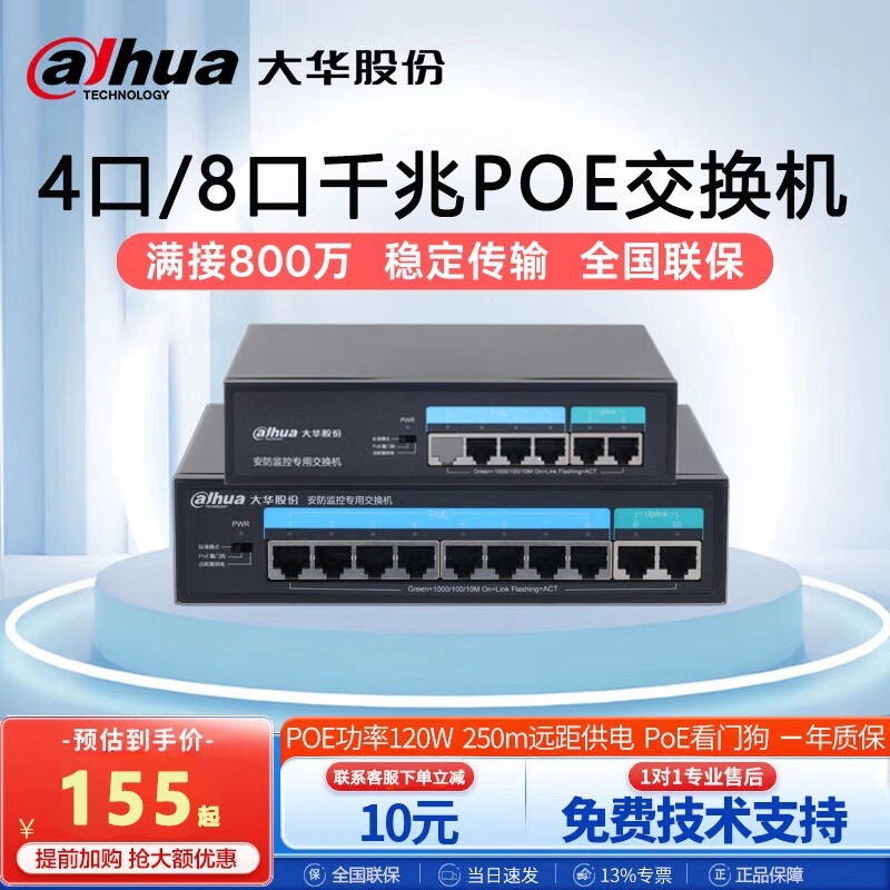 大華POEスイッチ4/5/8/9ポート百兆ギガビット国標48Vネットワークケーブル給電監視専用PS2100C