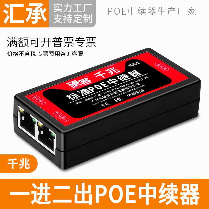 ハード客POE中継器一分二給電器監視カメラ標準スイッチ1入2出屋外防水