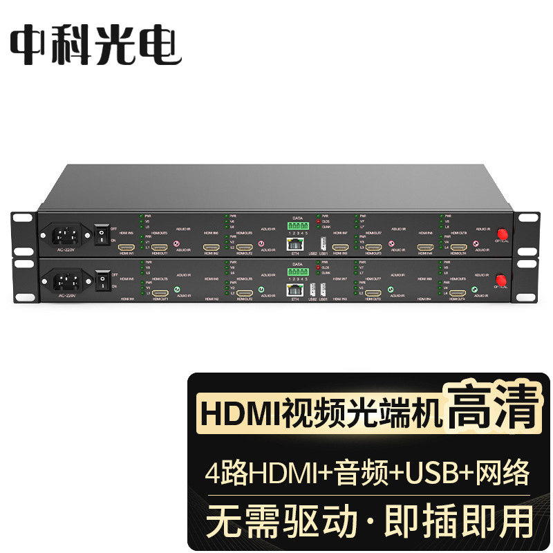 中科光電4路HDMI 4路オーディオ1路USB 1路百兆網ZK-HDMI/D-4HAUF-FC