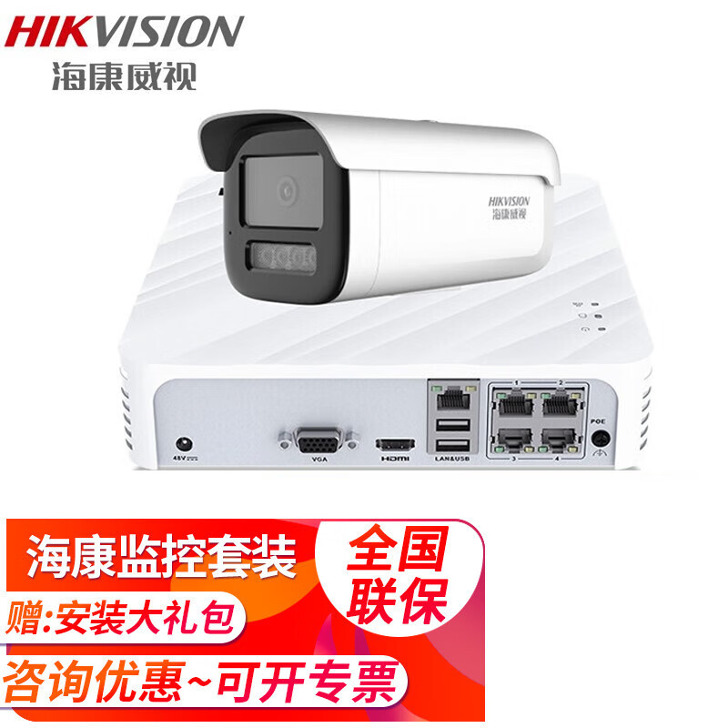 海康威視 (HIKVISION) カメラ室内外家庭用監視セット400万hdフルカラー夜