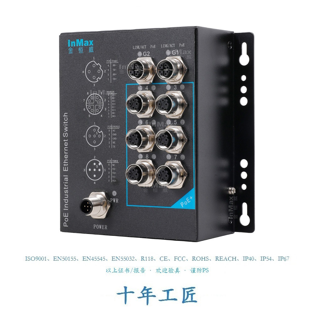 InMax Jinhengwei 110V 航空プラグ 2+6 ポート PoE 鉄道交通車両スイッチ M12 スイッチ