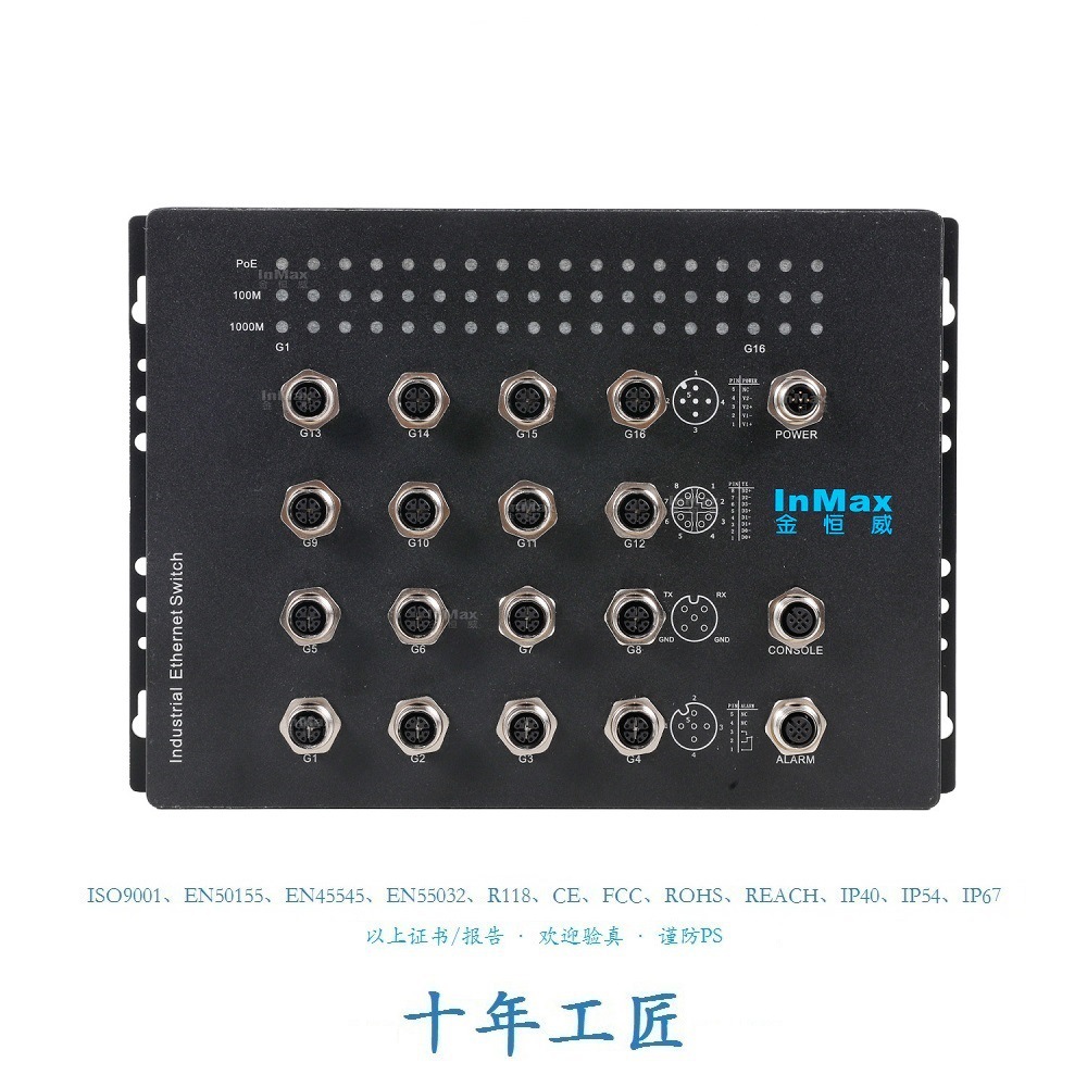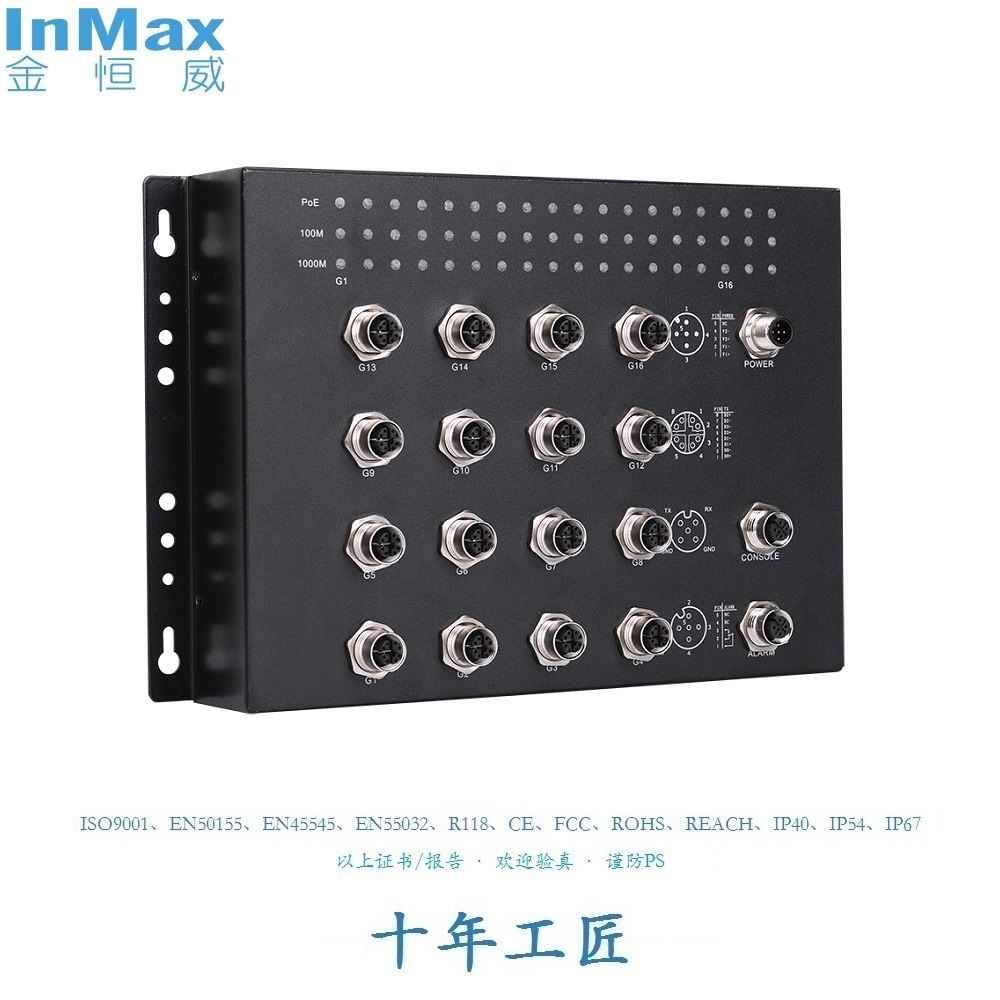 InMax Jinhengwei 管理型 16 ポート PoE ギガビット X コード IP67 防水 M12 車両スイッチ