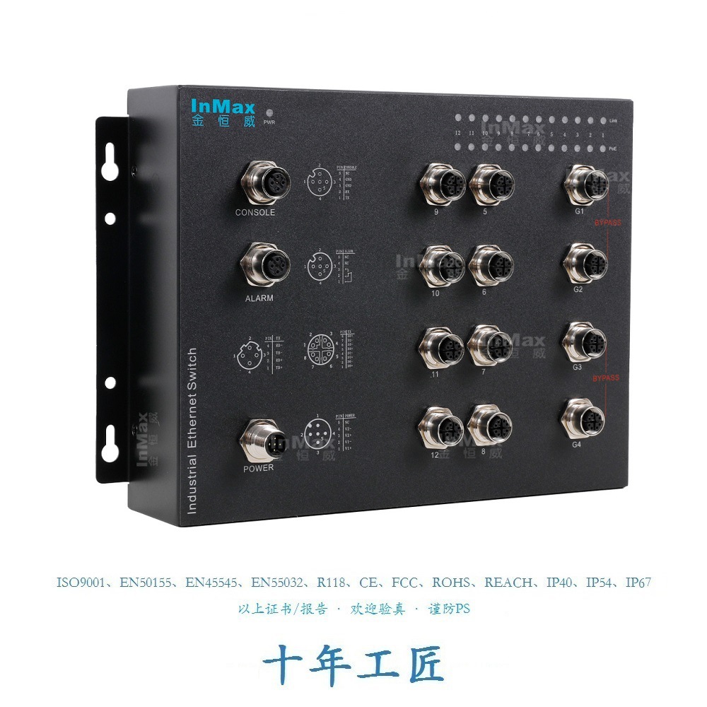 InMax Jinhengwei 管理型 12 ポート PoE ギガビット X コードされた鉄道輸送 M12 車両スイッチ