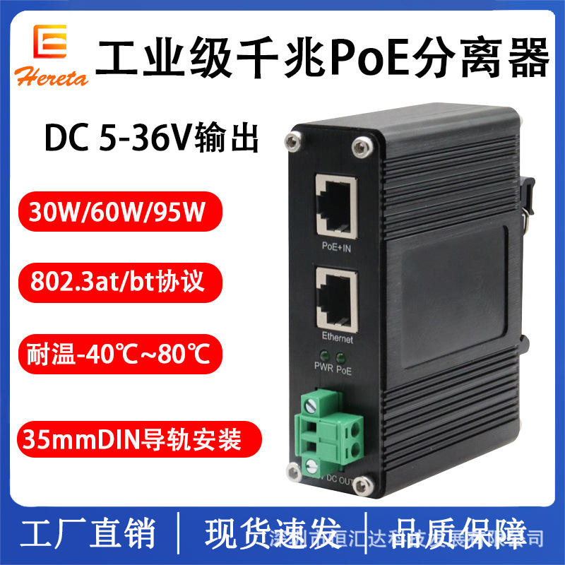 産業用ギガPoEセパレータPoE電源変換DCオプションDC5-36V出力電源データ隔離