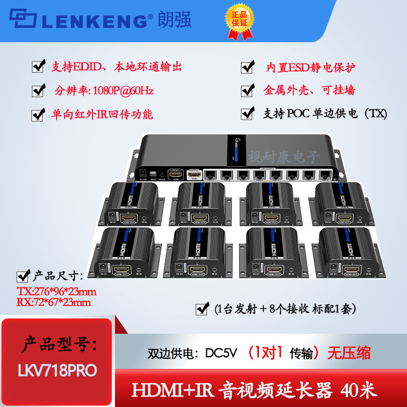 朗強lkv 718pro HDMIハイビジョン延長器1進8出ネットワークケーブル分配器POC給電ビデオ拡張