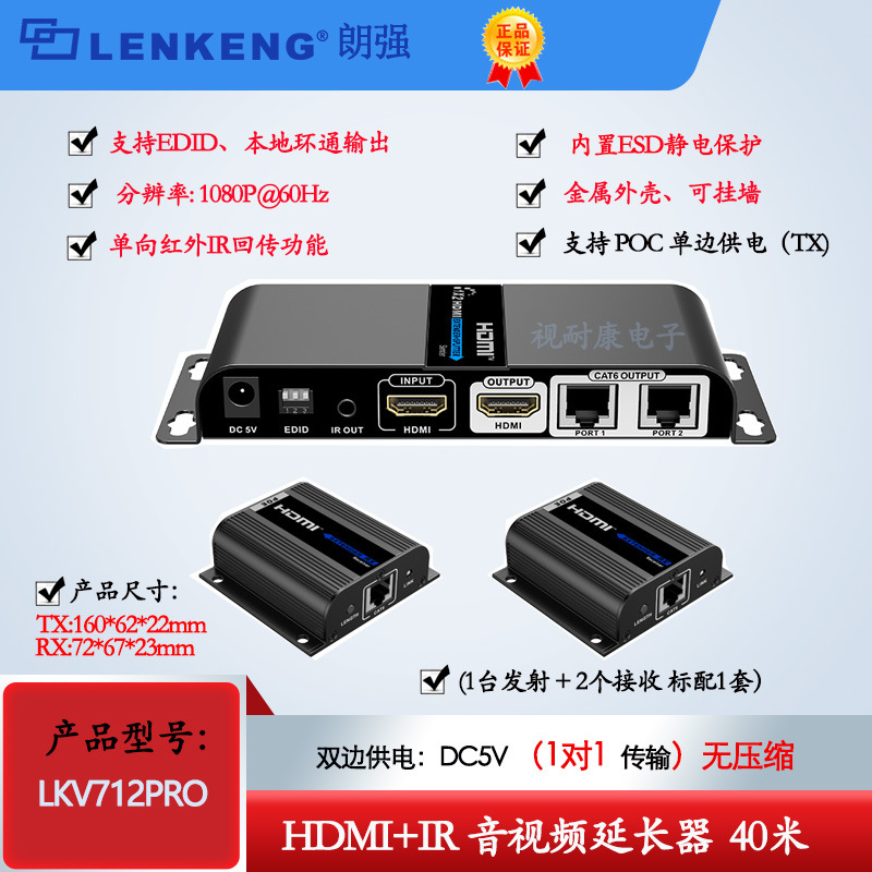 朗強lkv 712pro HDMI延長器1進2出ネットワークケーブル分配器POC給電40m 1発2受信IR