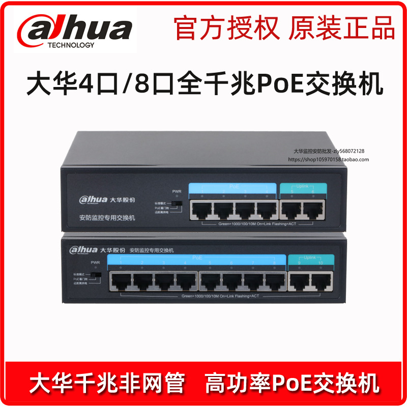 大華スイッチ4ポート8ポート全ギガPOEスイッチ監視接続DH-PS2100C-8GT2GT-120