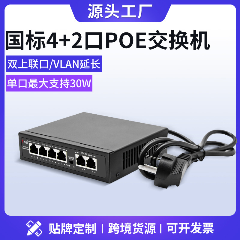 国標POEスイッチ4 2ポートイーサネット電源スイッチ監視APネットワークケーブル電源PoeSwitch