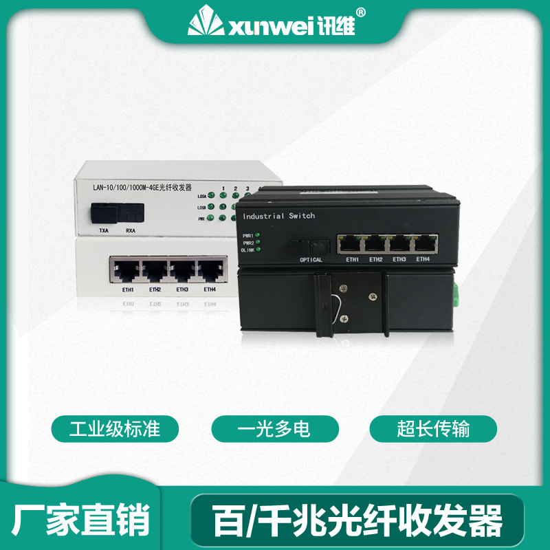 光ファイバトランシーバ工業級ギガビットシングルモード1光2電気4電気8電気トランシーバ百兆光電変換器