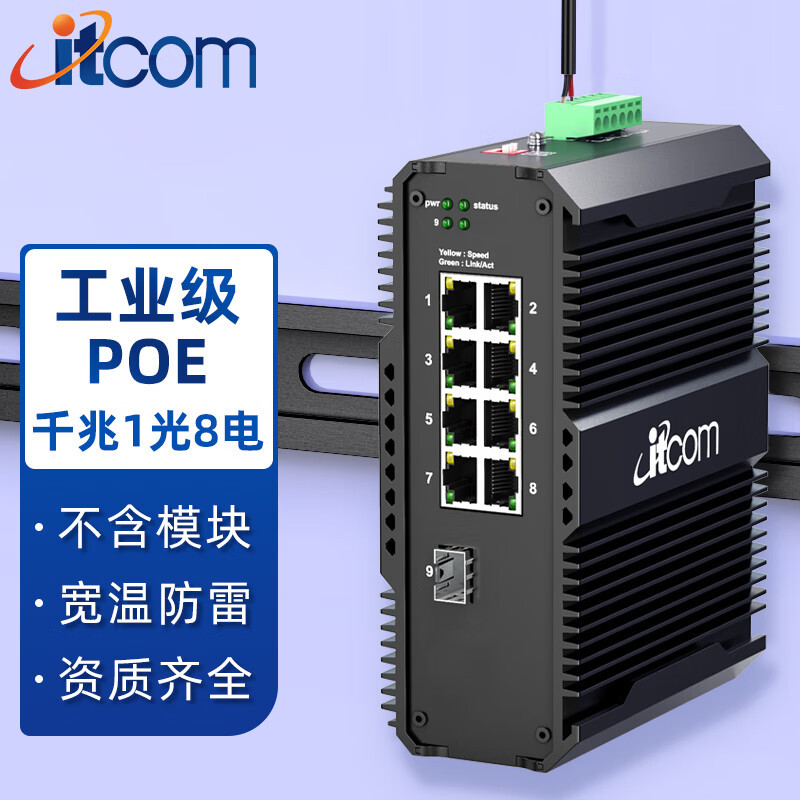 Itcom工业スイッチギガビット1光8电気SFP光ポート光ファイバトランシーバ48VPOE光电コンバータガイド
