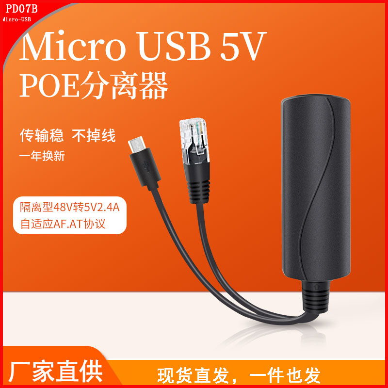 百兆国標48v回転5v 2 a絶縁型POE分離器マイクロ-usb POE分離器