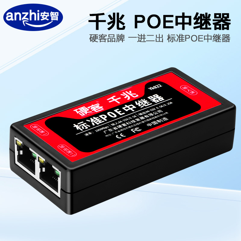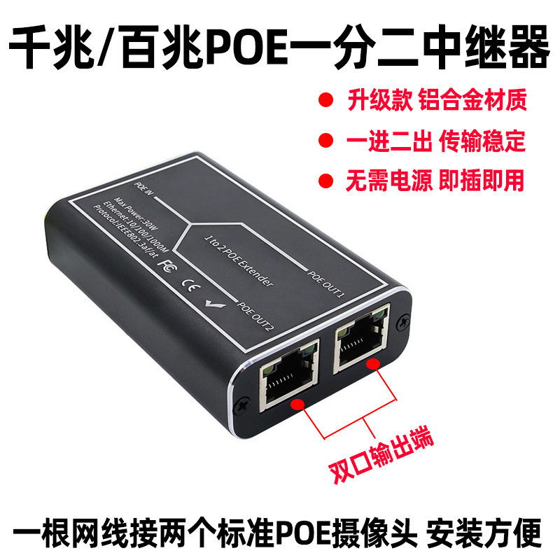 ハード客POE中継器ギガビットネットワーク一分二給電器監視カメラ標準スイッチ1進2出