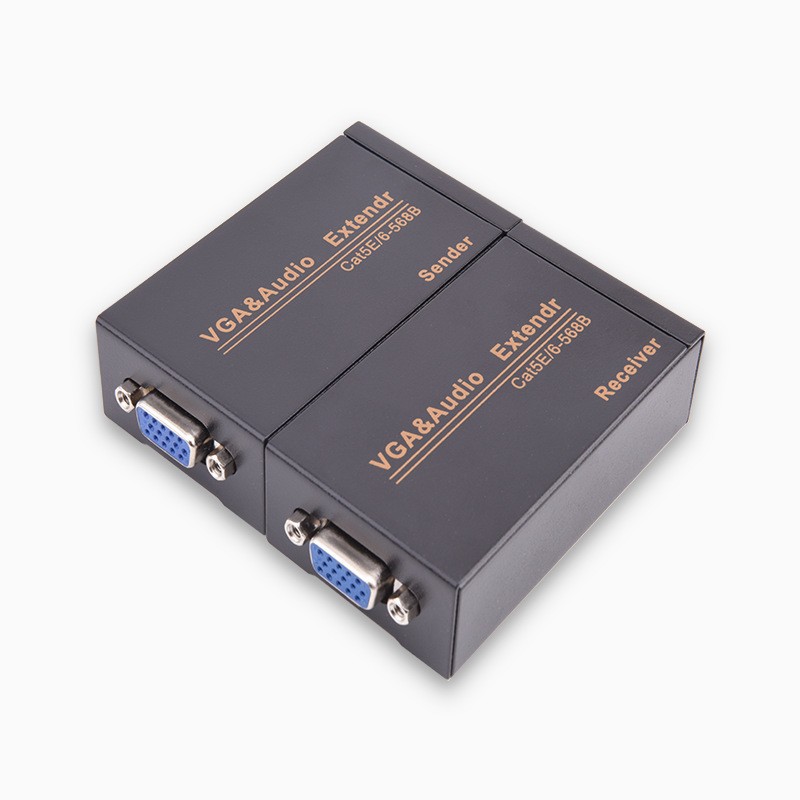Vga延長器vga回転rj45シングルケーブル信号増幅器100メートル音声ビデオ同期hd 1080p