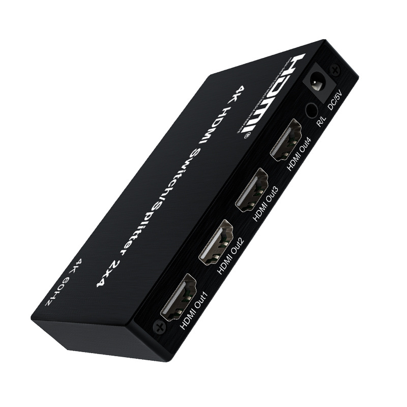 Hdmi2入4出4kハイビジョン分配器2*4切替分配器60hzオーディオ切替器3.5イヤホン付き