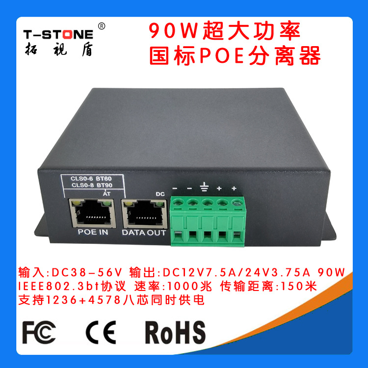 国標90w超大電力btプロトコルPOE分離器高速ボール液晶ディスプレイ専用POEPD90G