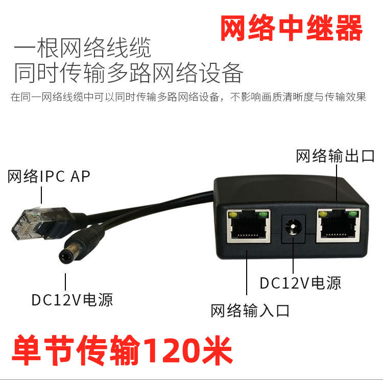 ネットワーク中継器IP高精細延長器直列器アンプ変換器ネットワークカメラ伝送器