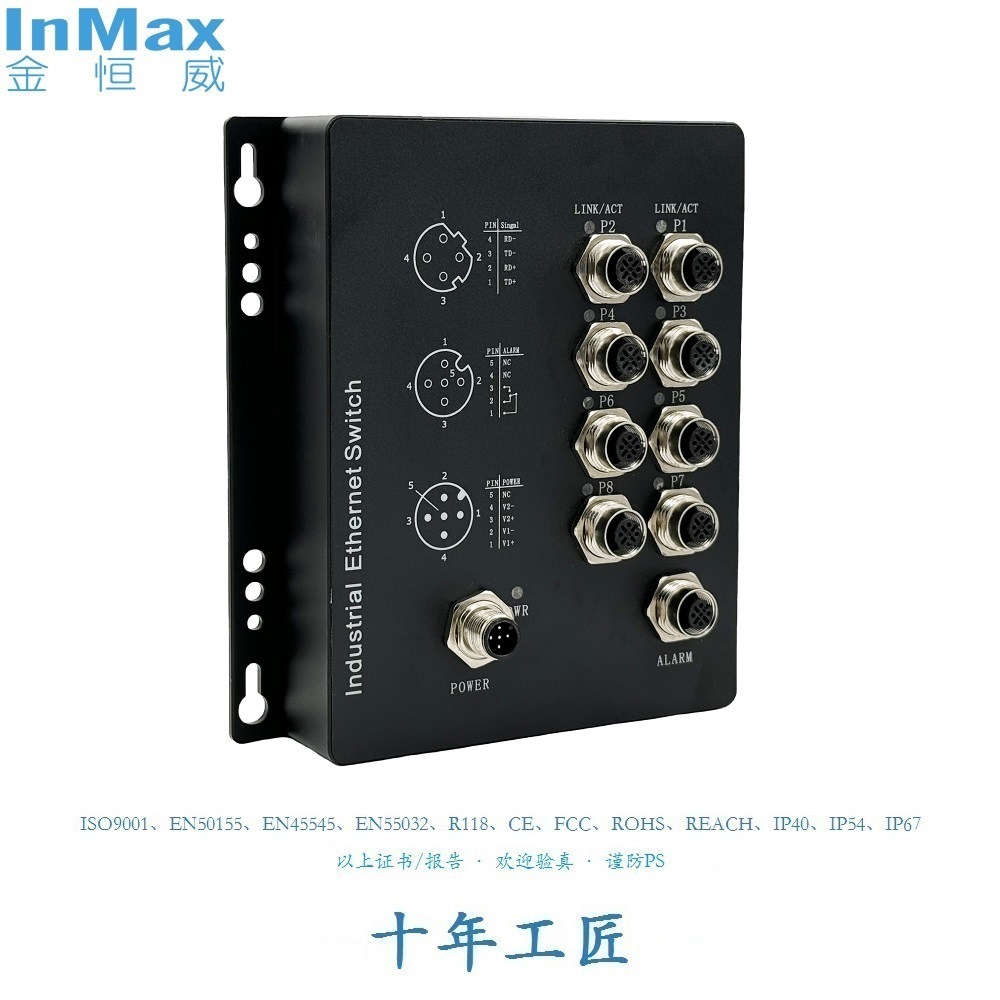 InMax Jinhengwei 110V 航空プラグ 2+6 ポート PoE 鉄道交通車両スイッチ M12 スイッチ
