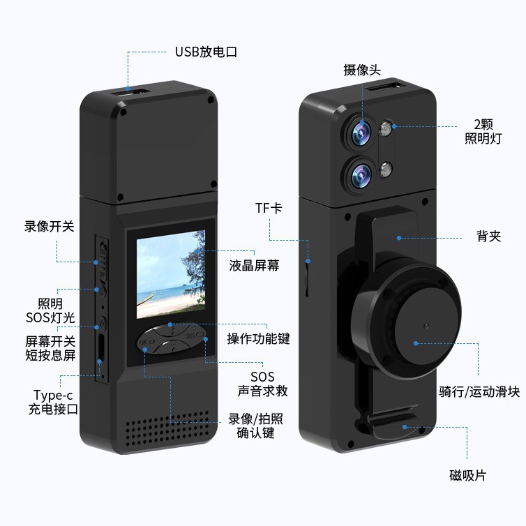 新型スクリーン付きカメラ充電宝照明三合一走行運動記録計は長い航続を持っています。
