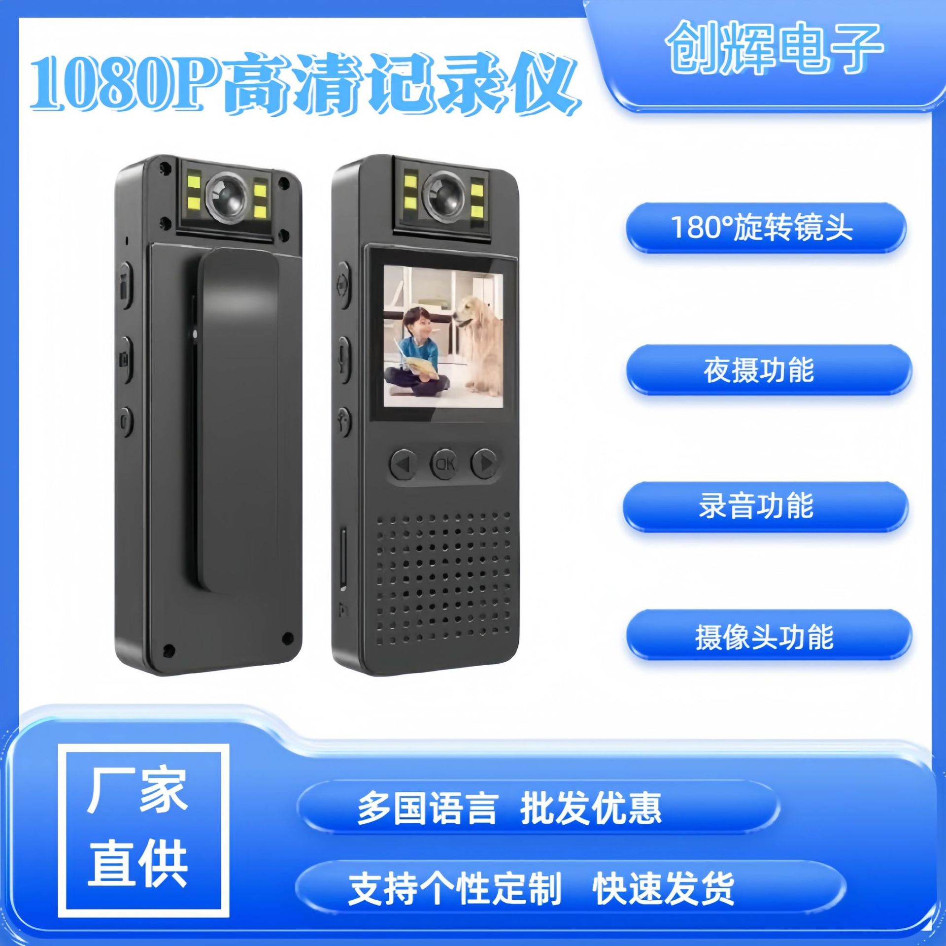 新型対外貿易高精細法執行記録計1080p赤外線夜間ビデオレコーダー移動検出カメラ