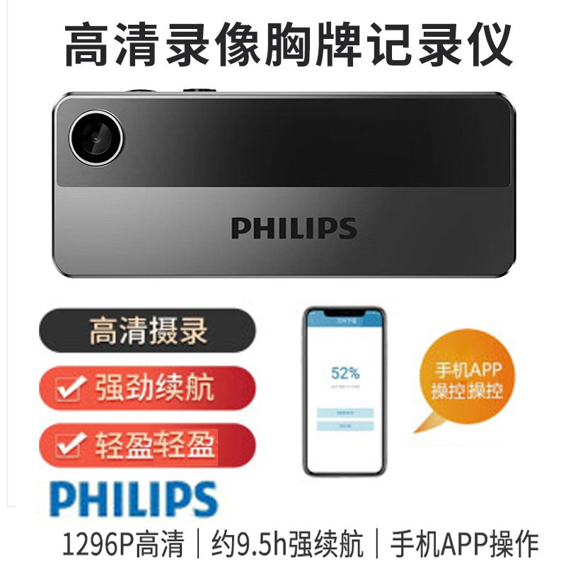 フィリップス VTR8001 バッジ型法執行記録装置 ワイヤレス Wi-Fi 作業用高解像度バッジ型カメラ VTR8002