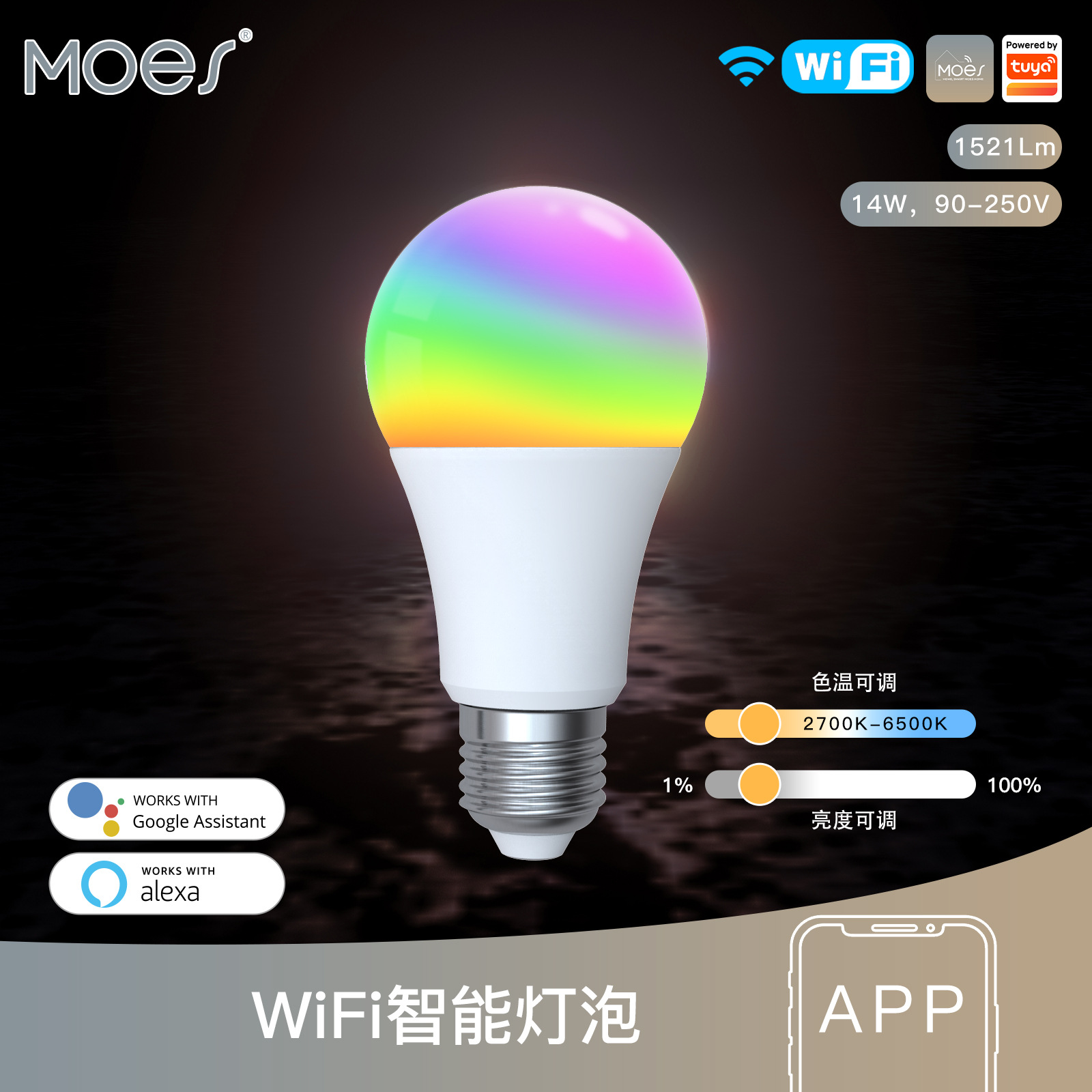 WiFi落書きスマートホームLED電球RGB調光カラーappコントロールE27ベース14wスマートライト