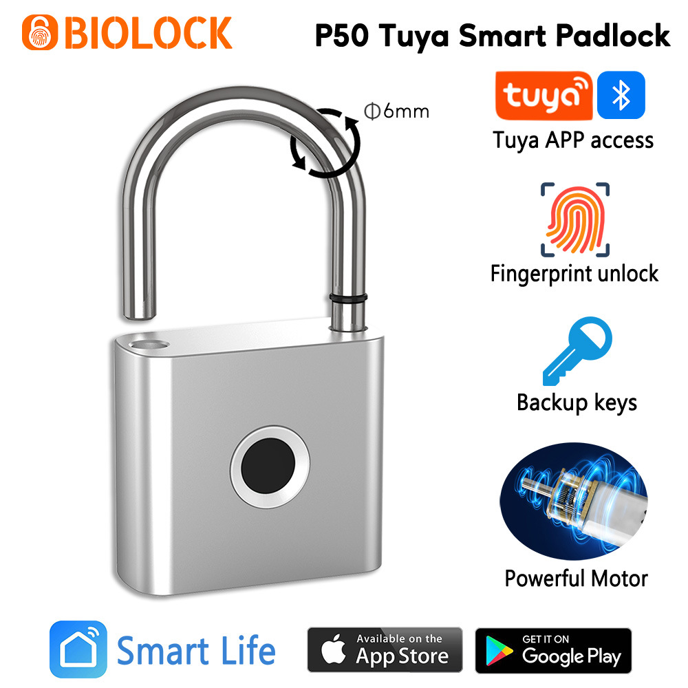 TUYA Tuya スマート Bluetooth APP 指紋南京錠大型モーター付き、バックアップメカニカルキー付き 6mm ステンレス鋼ロックビーム