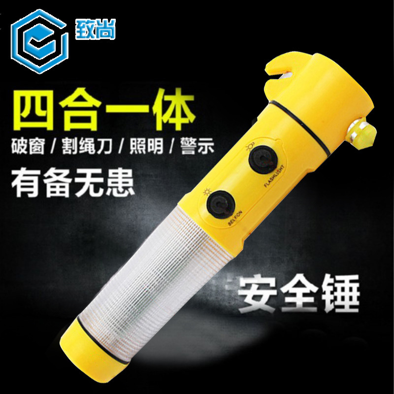 自動車消防用四合一安全ハンマー多機能音光警報懐中電灯車載緊急脱出破窓器