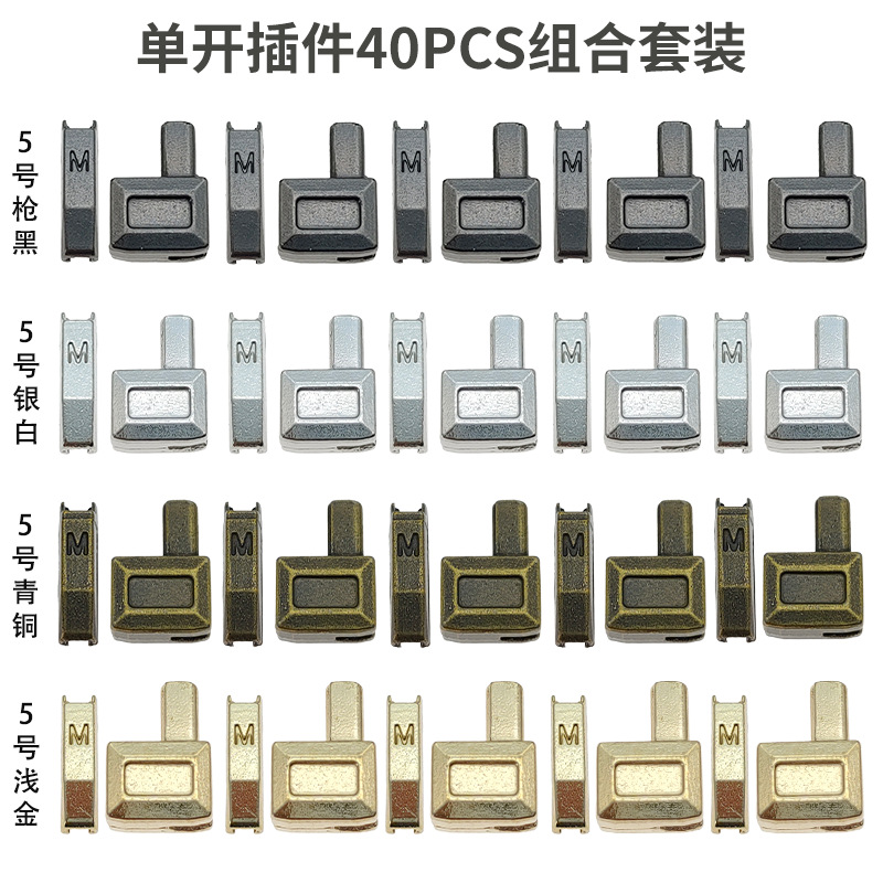 5番金属シングルオープンプラグイン40PCSラッチセット20付左右サイズ差込部品ジッパー修复フラッグ