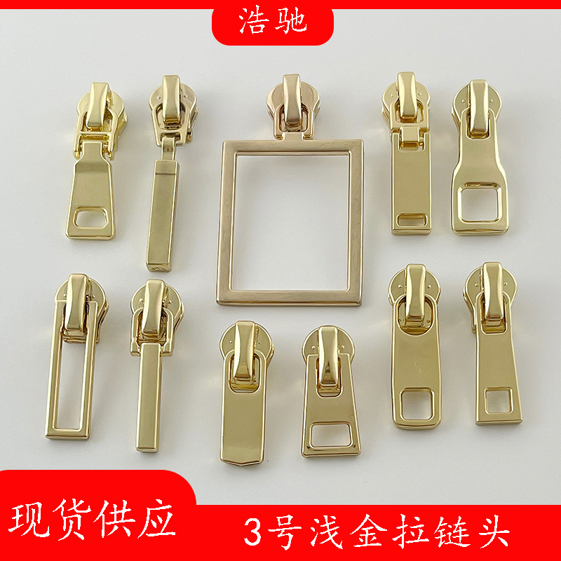 スポット卸売 No. 3 ライトゴールドジッパーヘッドスクエアピースプルブランド亜鉛合金プルタブ衣類バッグジッパーヘッドアクセサリー