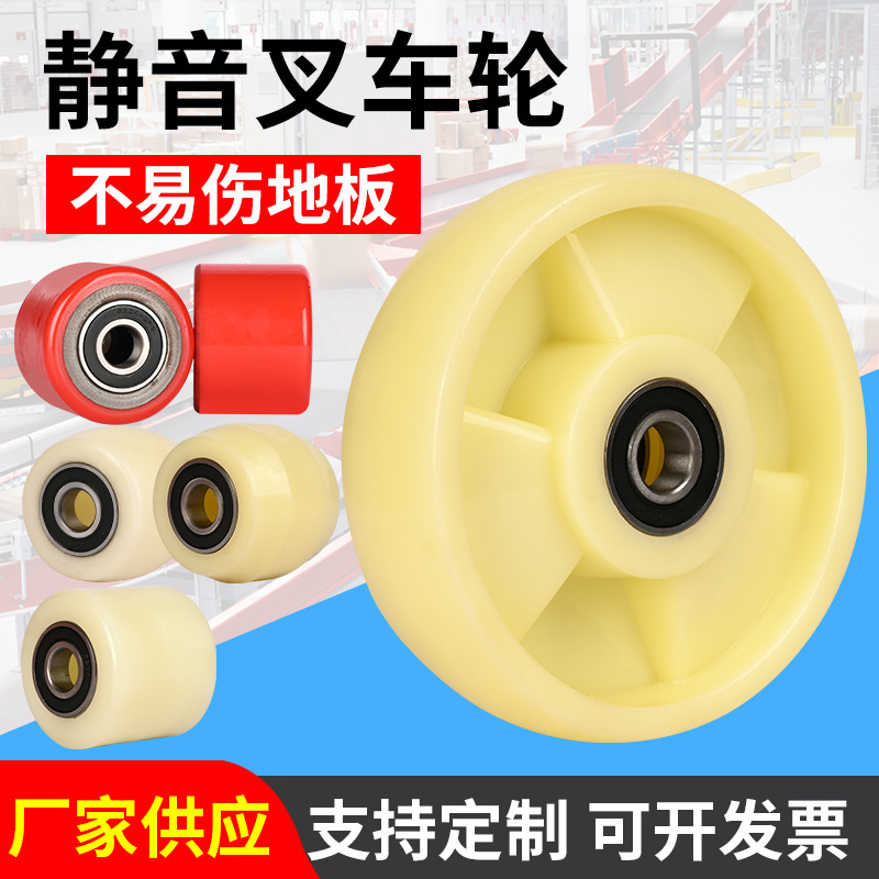 手動フォークリフト部品pu輪地牛荷重駆動ナイロン輪電動油圧搬送車自在フォークリフト車輪