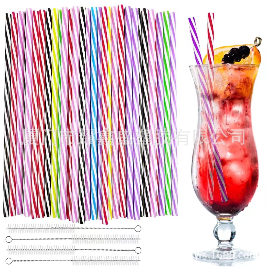 PPストライプストローは再利用可能で、飲料、スムージー、ジュース、カクテルに適しており、越境で人気があり、在庫ありで直販されています。