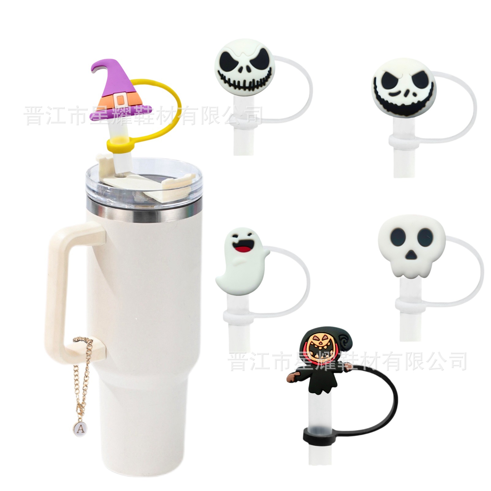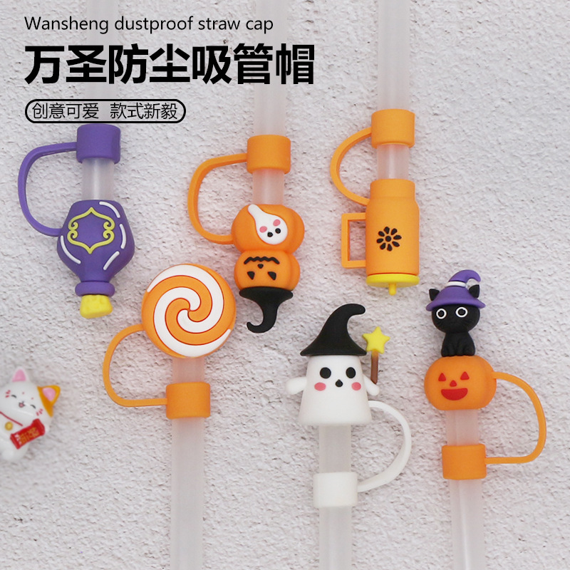 越境創意ハロウィーンシリカゲルストローキャップ防塵キャップ防塵カバーかわいいアニメ飲料ストローカバー現物