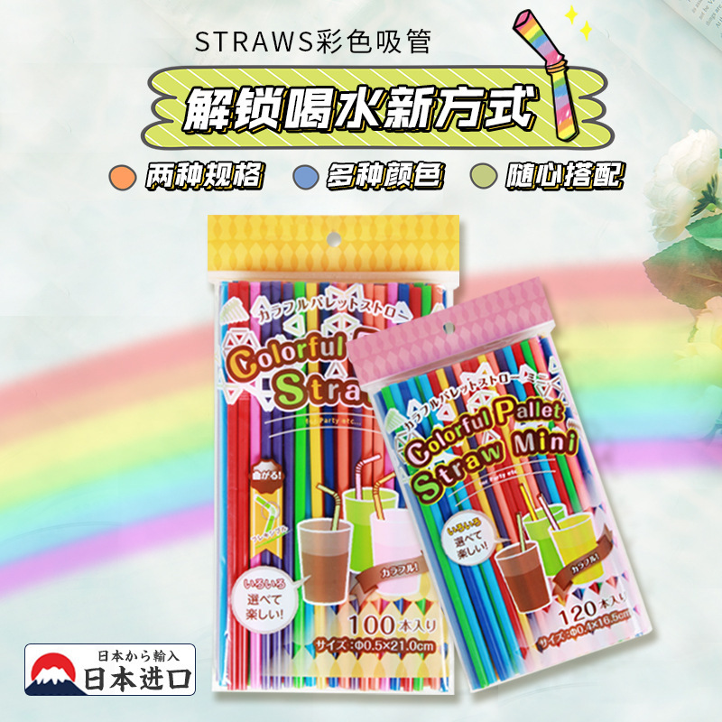 日本进口一次性食品级塑料吸管儿童彩色独立包装便携成人弯曲吸管