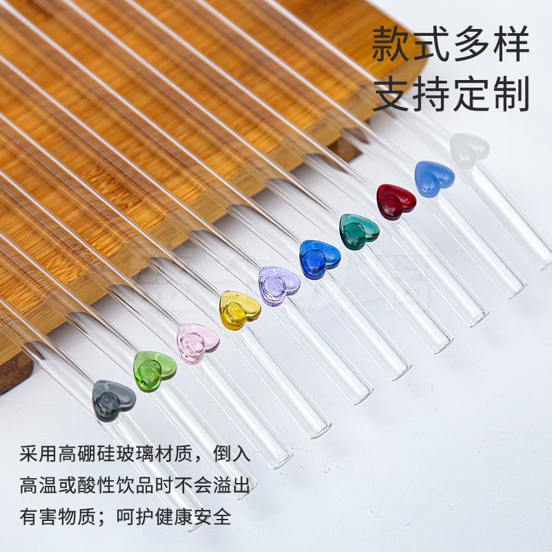 Ins新しい愛ストローガラス高ホウ素シリコンパーマ非使い捨て子供ミルクティーコーヒー食品級
