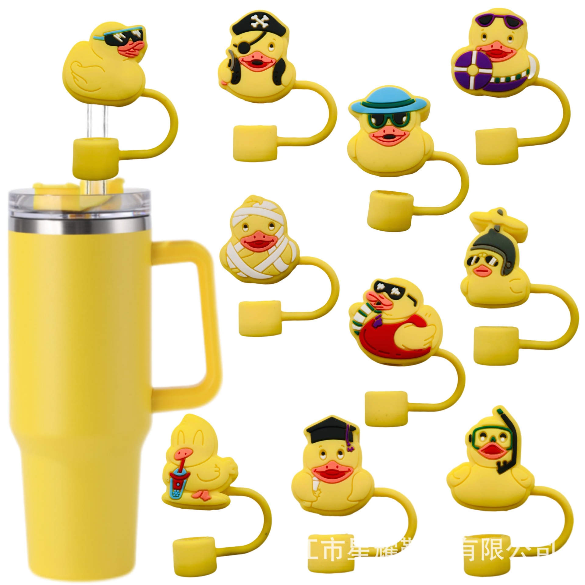 楽しい小さな黄色いアヒルの立体形状ストローキャップウォーターカップストローカバー防塵とこぼれ防止ストロー装飾プラグ在庫卸売