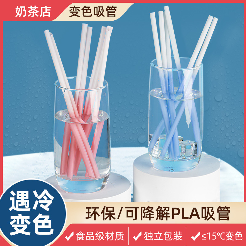 PLAは冷たくなると色が変わります使い捨てストローは分解可能で個別にパッケージ化されており、環境に優しいコーヒー冷たい飲み物ミルクティーストローです