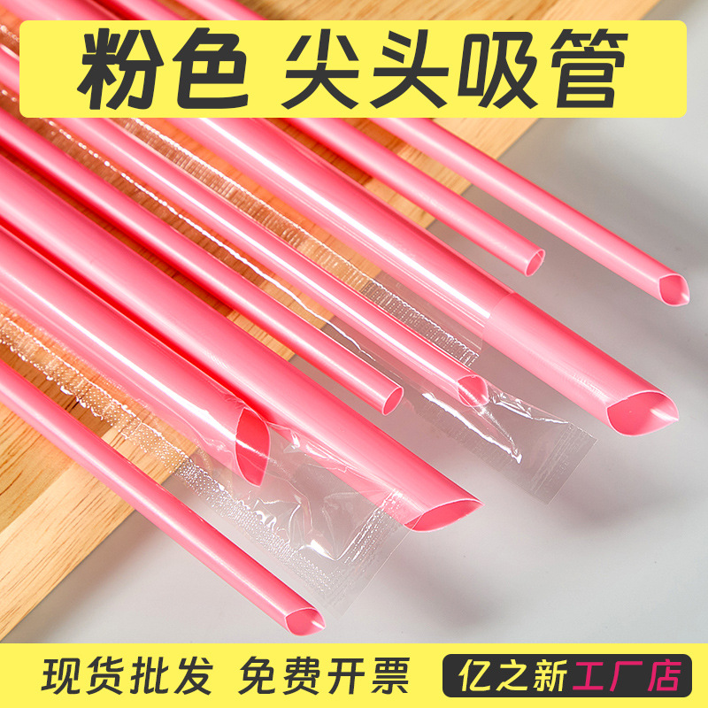 ピンク使い捨てストローミルクティー飲料ppプラスチックストロー食品級純色粗ストロー単独包装卸売り