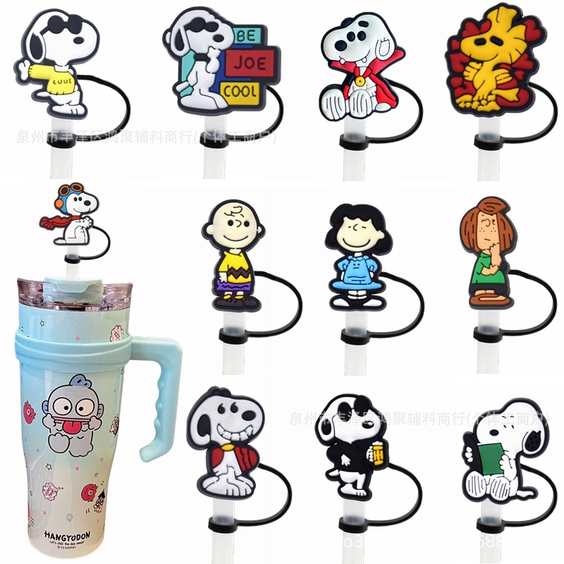 漫画スヌーピーストローキャップ水カップアクセサリー再使用可能ダストプラグ10mm食品グレードシリコーンストロースリーブ