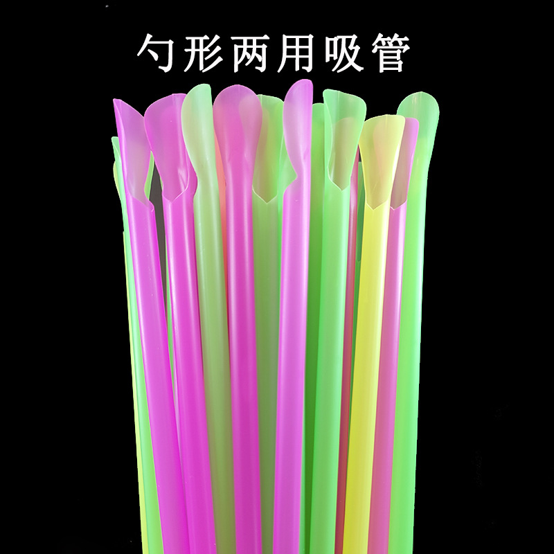 国境を越えたスポットカラースプーンストロー両用使い捨て一体二合一砂氷ストロープラスチックpp100本