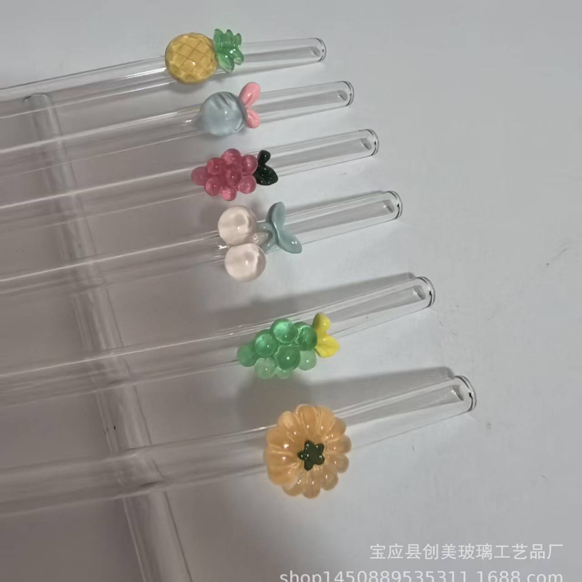 高硼硅玻璃弯头吸管小花玻璃吸管果汁饮料吸管工厂现货套装批发