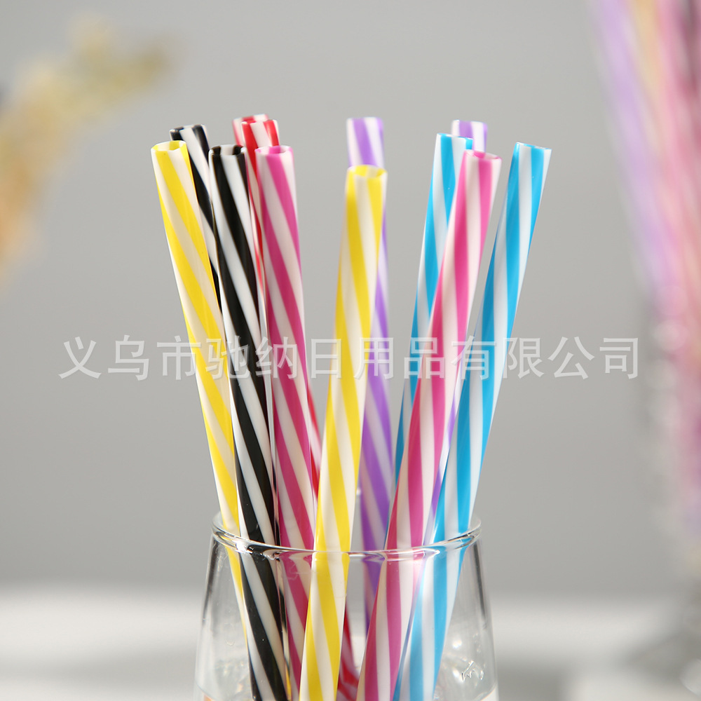バックル2色スレッドストライプストロー再使用可能食品グレードPPプラスチックハードストレートチューブリング付きドリンクチューブ