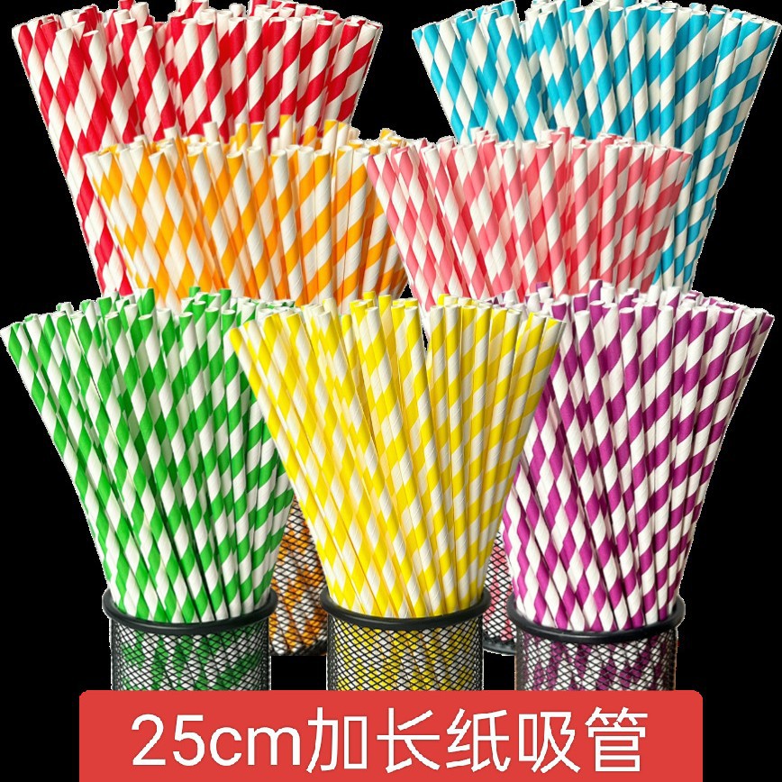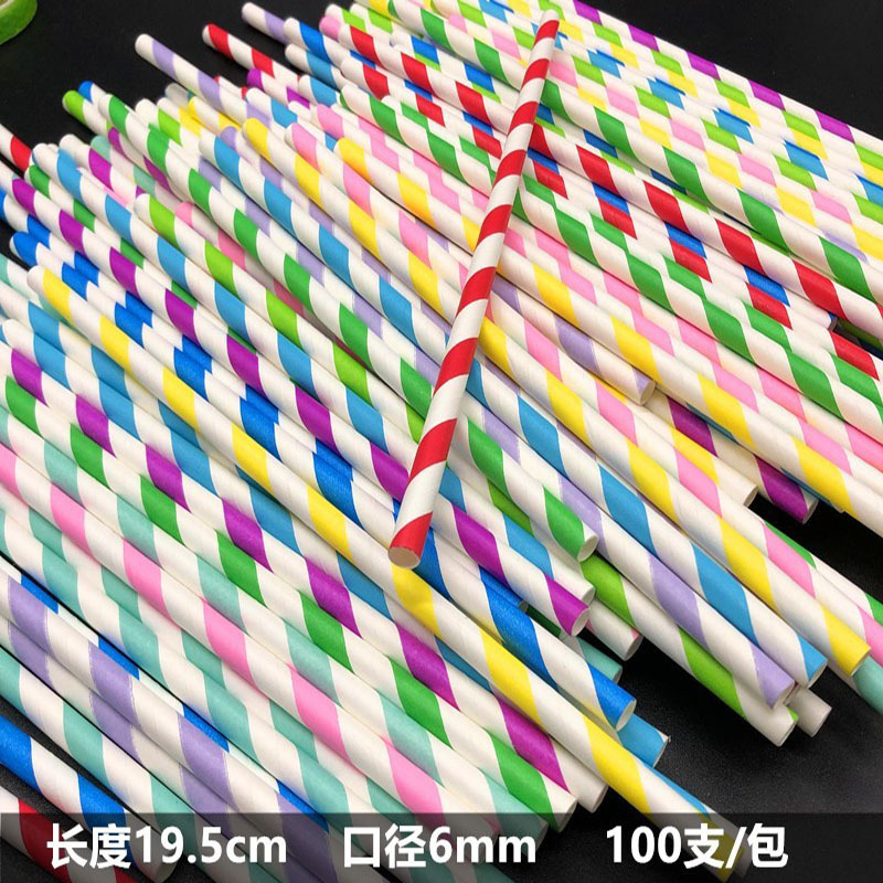スポット使い捨て紙ストロー分解性紙ストロー縞模様の紙ストローミルクティーカラーマルチカラー紙チューブ