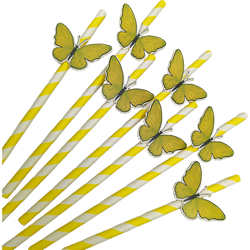 蝶の形のカードストロー、使い捨て、生分解性、デザートテーブル、ケーキ、カクテルパーティーの装飾用紙ストロー、環境に優しい