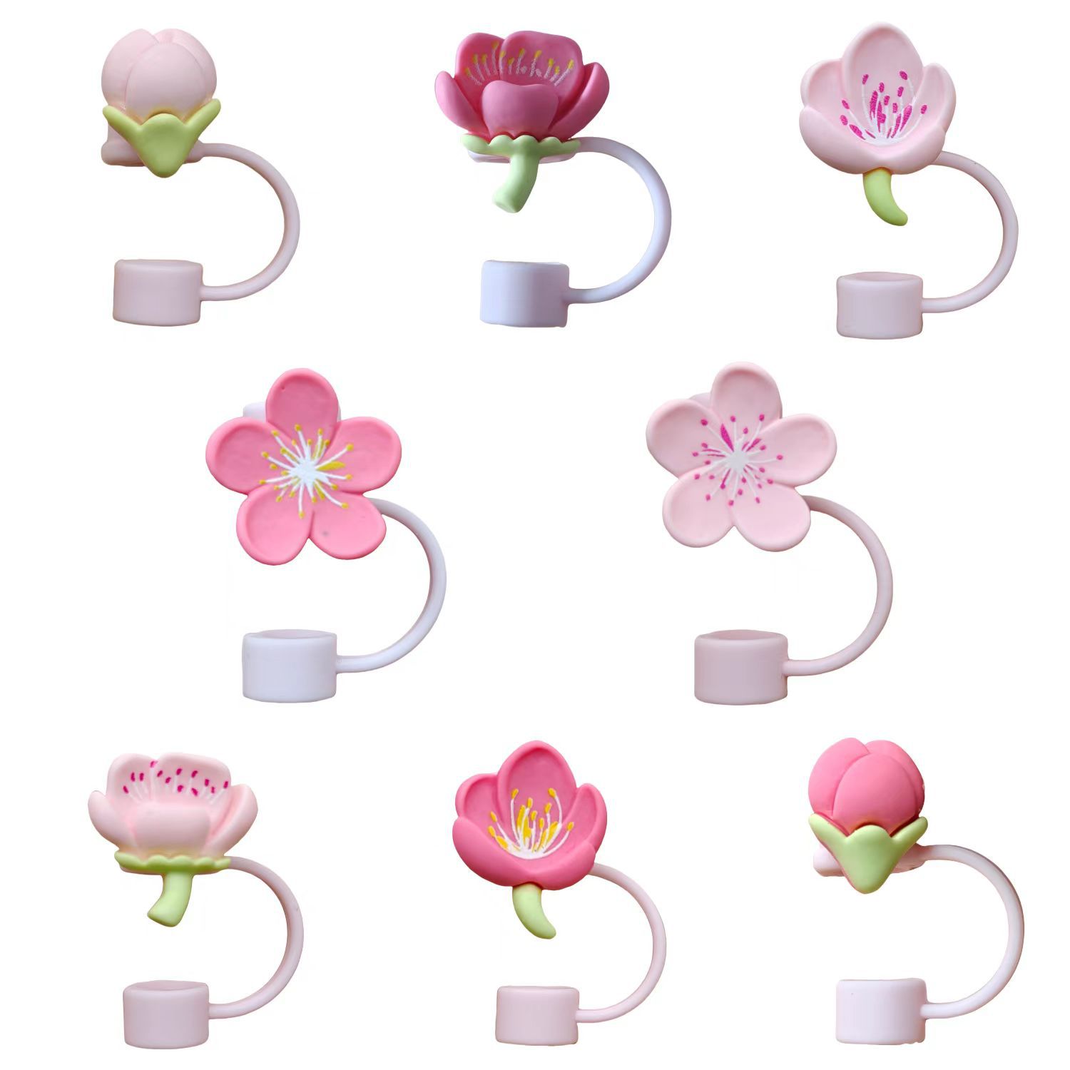 国境を越えた新型小香風桜ピンクストローカバー10mmストローキャップ防塵キャップ通用食品級シリコンキャップ