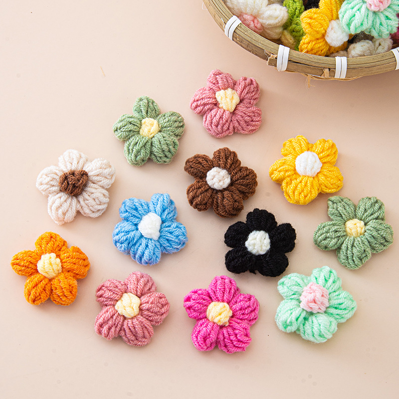 DIY手織りウールフラワー、かぎ針編みパフフラワーアクセサリー、衣料品アクセサリー、卸売在庫、工場直送