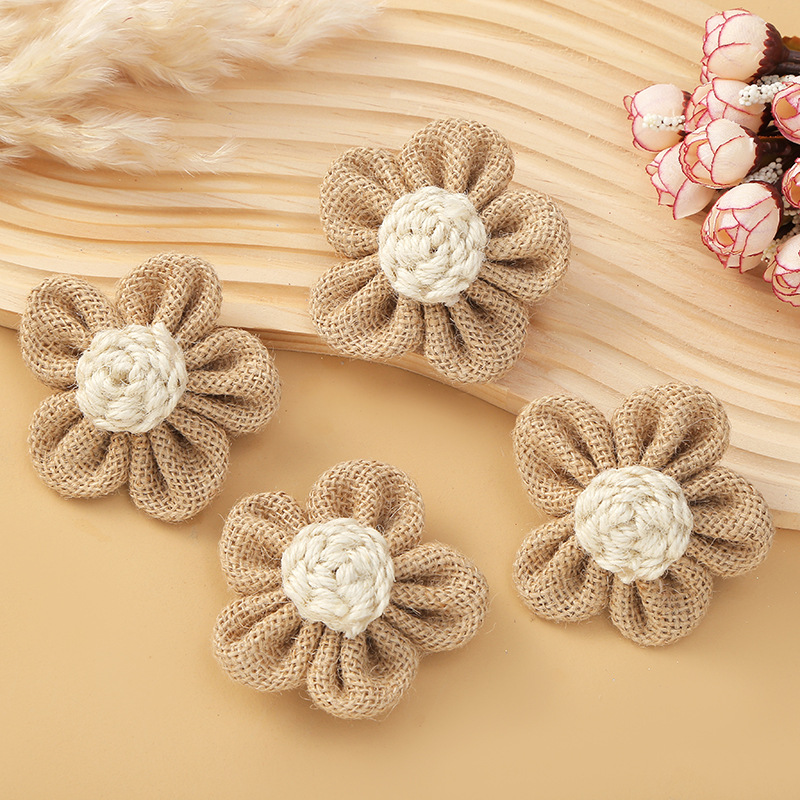 手作り黄麻布の花クリスマス結婚式の装飾黄色のツイスト DIY ジュート 5 花の帽子の花の弓の装飾