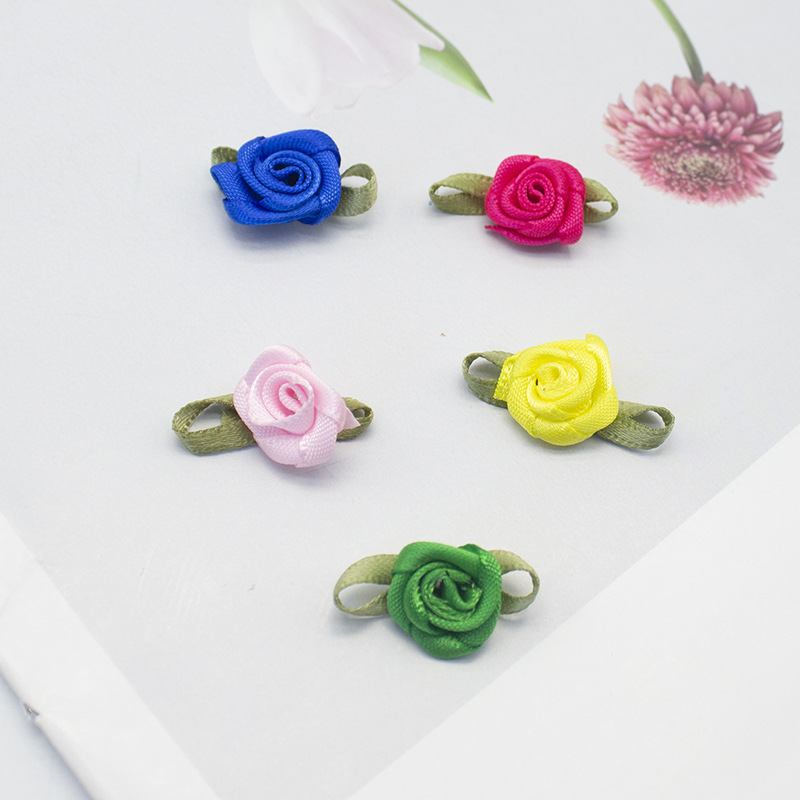 現物の小花布芸は花の蝶結びの子供の手作りの髪飾りdiyの部品の材料のバラの花の装飾を模倣します。