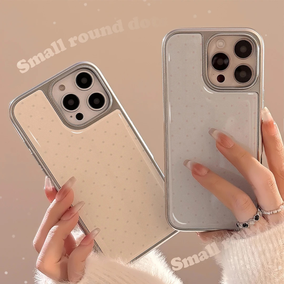 韓国風シンプル水玉模様 iPhone 17/16用スマホケース Apple 15水性樹脂13電気メッキ12個性派14ハード
