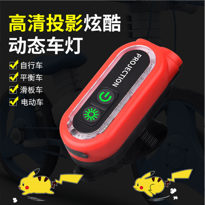 自転車投影灯電気自動車動的ピカチュウ車載迎賓灯児童自転車改装飾テールランプ